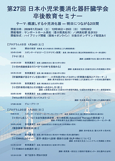 | テーマ | 橋渡しする小児消化器〜明日につながる2日間 |